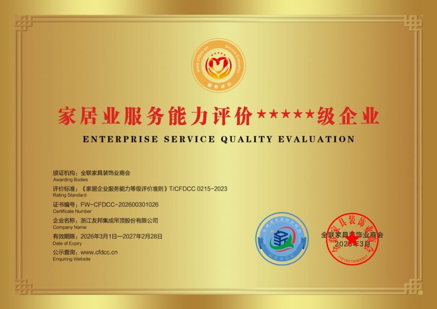 3·15國際消費者權(quán)益日來臨之際,深耕中國家居建材領(lǐng)域二十余年、集成吊頂發(fā)明者YOUPON友邦,一舉斬獲全國工商聯(lián)家具裝飾業(yè)商會頒發(fā)的三項重磅榮譽(yù):家居業(yè)產(chǎn)品質(zhì)量評價★★★★★級企業(yè)、家居業(yè)信用評價AAAAA級企業(yè)、家居業(yè)服務(wù)能力評價★★★★★級企業(yè)。此次攬獲三項權(quán)威評級,不僅是市場與消費者對友邦二十余年堅守品質(zhì)、恪守誠信、精進(jìn)服務(wù)的全面肯定,更是行業(yè)對其作為標(biāo)桿企業(yè),引領(lǐng)中國制造高質(zhì)量發(fā)展的高度認(rèn)可。