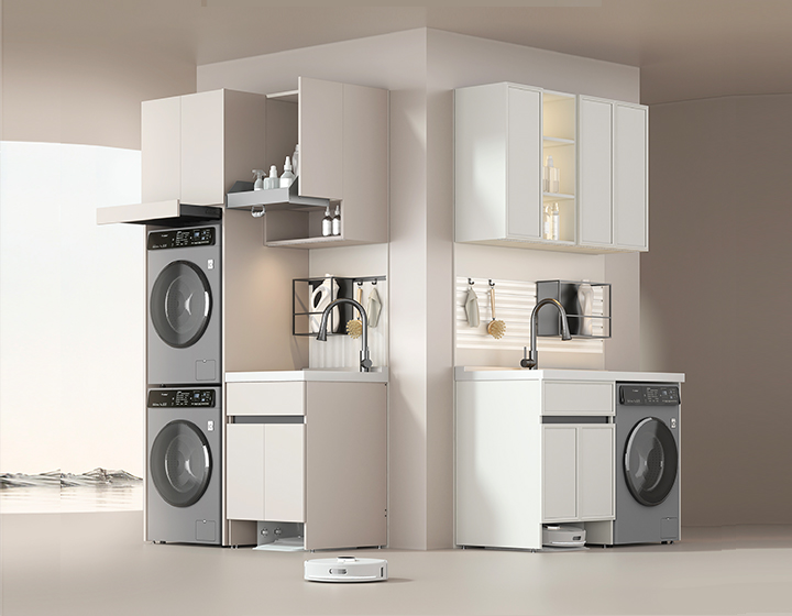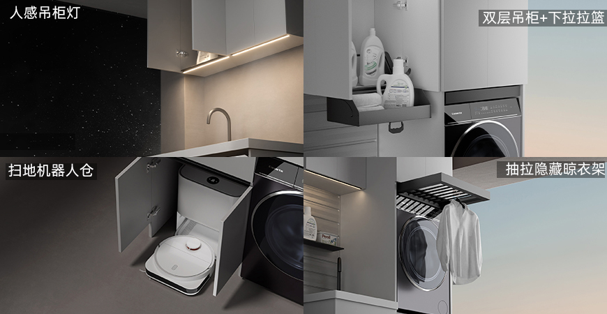 掃地機器人倉:節省空間,上下水可接入陽臺下水管。